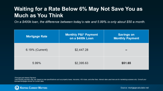 So, if you’re waiting for 5.99%, that difference might not be worth missing out on today’s opportunities, like having more homes to choose from, better negotiation leverage with today’s sellers, and fewer buyers out there looking for the same houses.