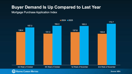 Association (MBA) reports purchase applications are up compared to last year, a clear signal that demand is building again (see graph below):